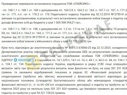 Также правоохранители насчитали около 30 "зеркал", которые использует КОСМОЛОТ для зарабатывания денег в обход Налогового кодекса, но главное, именно "Спейсикс" фигурирует в определении Шевченковского районного суда Киева от 1 февраля 2024 года.
