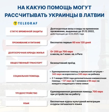 — Зарегистрировались мы 2 мая, а единовременную помощь в размере 272 евро получили уже 19-го. В этот промежуток времени нам выдавали продукты, средства гигиены, даже одежду, потому что по факту у нас ничего не было, ведь в отпуск мы ехали на три дня с минимумом вещей, — говорит Анна. — Квартиру нам нашли знакомые, но в целом украинцам предлагали варианты временного безвозмездного проживания. И впоследствии, когда подруга вернулась в Украину, а я осталась одна в квартире, я оформляла помощь на жилье, потому что моя зарплата на тот момент была немного больше расходов на аренду и оплату коммунальных услуг. Сейчас единственная льгота, которой пользуюсь — бесплатный проезд, потому что живу в Риге, а работаю в аутлете близ Юрмалы.