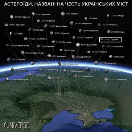 В честь поселка Пулины назван астероид! В 2007 году астероид под номером 241192 официально получил имя "Пулины" благодаря Андрушевской частной обсерватории "Июльское утро", которая находится в селе Гальчин Житомирской области. С 2003 года обсерватория присваивает малым планетам названия украинских населенных пунктов. Пулины вошли в перечень около полусотни астероидов, названных в честь городов Украины, и стали одним из полутора десятков объектов Солнечной системы, которые носят имена поселений Житомирской области.