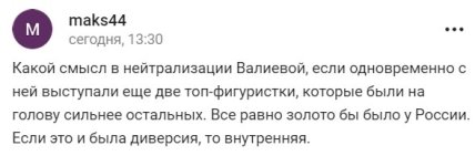 "Это очередной вопиющий пример политизации спорта, его разрушения, еще одно проявление нечистоплотной конкуренции по нейтрализации одной из сильнейших представительниц мирового фигурного катания.
