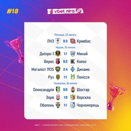 В понедельник, 26 февраля закончился 18-й тур украинской футбольной Премьер-лиги. Первые же матчи после зимнего перерыва в украинском футболе подарили неожиданные результаты. И, прежде всего, к таковым стоит отнести блеклые ничьи "Днепра-1" в домашнем матче с "Минаем", "Полесья" во Львове – с "Рухом", и донецкого "Шахтера" в Александрии.
