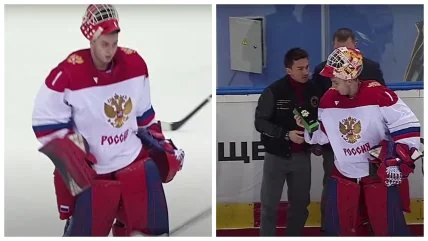 Напомним, сборная РФ проиграла белорусам со счетом 5:6. После этого россияне отказались от наград в знак протеста против судейства. Вратарь Андреянов и нападающий Дудоров отказались принимать награды как лучшие игроки турнира на своих позициях. Капитан команды Сурин оставил на льду приз за второе место на турнире.
