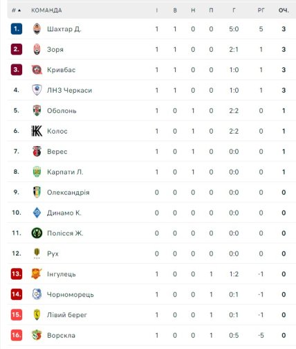 Результаты и видеообзоры матчей 1 тура УПЛ сезона 2024/25