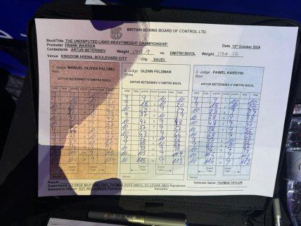 В субботу, 12 октября, в Эр-Рияде (Саудовская Аравия) прошел большой вечер профессионального бокса, главным событием которого стал бой за титул абсолютного чемпиона мира в полутяжелом весе Артур Бетербиев (21-0, 20 КО) — Дмитрий Бивол (23-1, 12 КО). На кону поединка стояли все основные пояса в этой весовой категории.