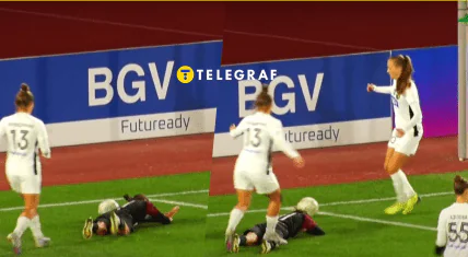 В одном из эпизодов встречи футболистка "Полесья" Владислава Пороходниченко (#13) наступает на ногу лежащей соперницы Натальи Чуриковой (#17) из "ЭМС-Подолья". Невероятно, но арбитр встречи Супонина проигнорировала данное нарушение. К слову, причина такого поведения Пороходниченко неизвестна.