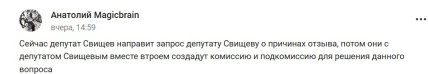 Невероятно, но теперь Свищев ищет виноватых в том, что законопроект не прошел.