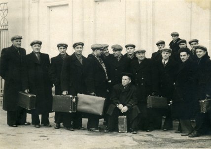 Зима 1955г. Днепропетровский Металлург готовится к новому сезону и собирается на выезд возле своего стадиона.