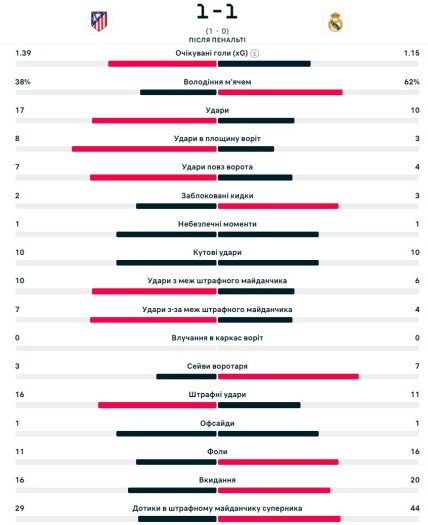 Во втором тайме команды играли на встречных курсах, но забить не сумели. Отметим, ближе всех к голу был Винисиус, который не реализовал пенальти. В итоге судьба путевки в четвертьфинал ЛЧ решалась в серии пенальти, в которой преуспели Сливочные. За "Атлетико" 11-метровые не реализовали Альварес и Льоренте, причем Хулиан свой пенальти забил, но арбитры отменили взятие ворот из-за двойного касания. В "Реале" только Лукас Васкес не забил с точки.
