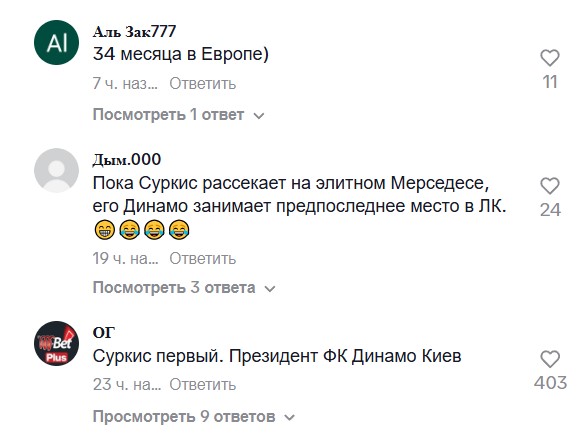 В сети узнали президента "Динамо" и активно комментируют кадры с ним. Также пользователи обсуждали последние еврокубковые провали Бело-синих. Один из пользователей предположил, что Суркис приехал в Монако отдохнуть в казино. Добавим, что в августе 2022 года "Украинская правда" сообщала, что президента "Динамо" регулярно замечали в местном казино.