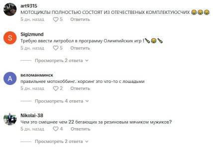 Данный вид спорта, похоже, стал ответом Беларуси на хоббихорсинг, который стал набирать популярность на Западе и не только. В белорусском варианте вместо воображаемой лошади используют воображаемый мотоцикл.