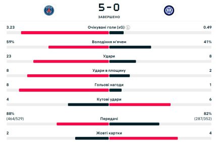 Первый тайм полностью прошел под диктовку ПСЖ. Французский суперклуб доминировал практически во всех компонентах игры, а вот "Интер" лишь изредка создавал моменты у ворот парижан. Счет в матче открыл Ашраф Хакими, которого на ударную позицию вывел 19-летний Дезире Дуэ. К 20-й минуте Дуэ дальним ударом с рикошетом удвоил преимущество "Пари Сен-Жермен".