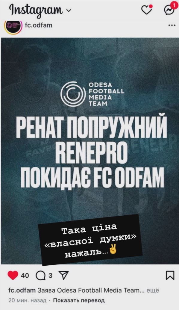 Ренат на своей странице в Instagram прокомментировал решение одесской команды, а также поблагодарил команду и лигу за сотрудничество.