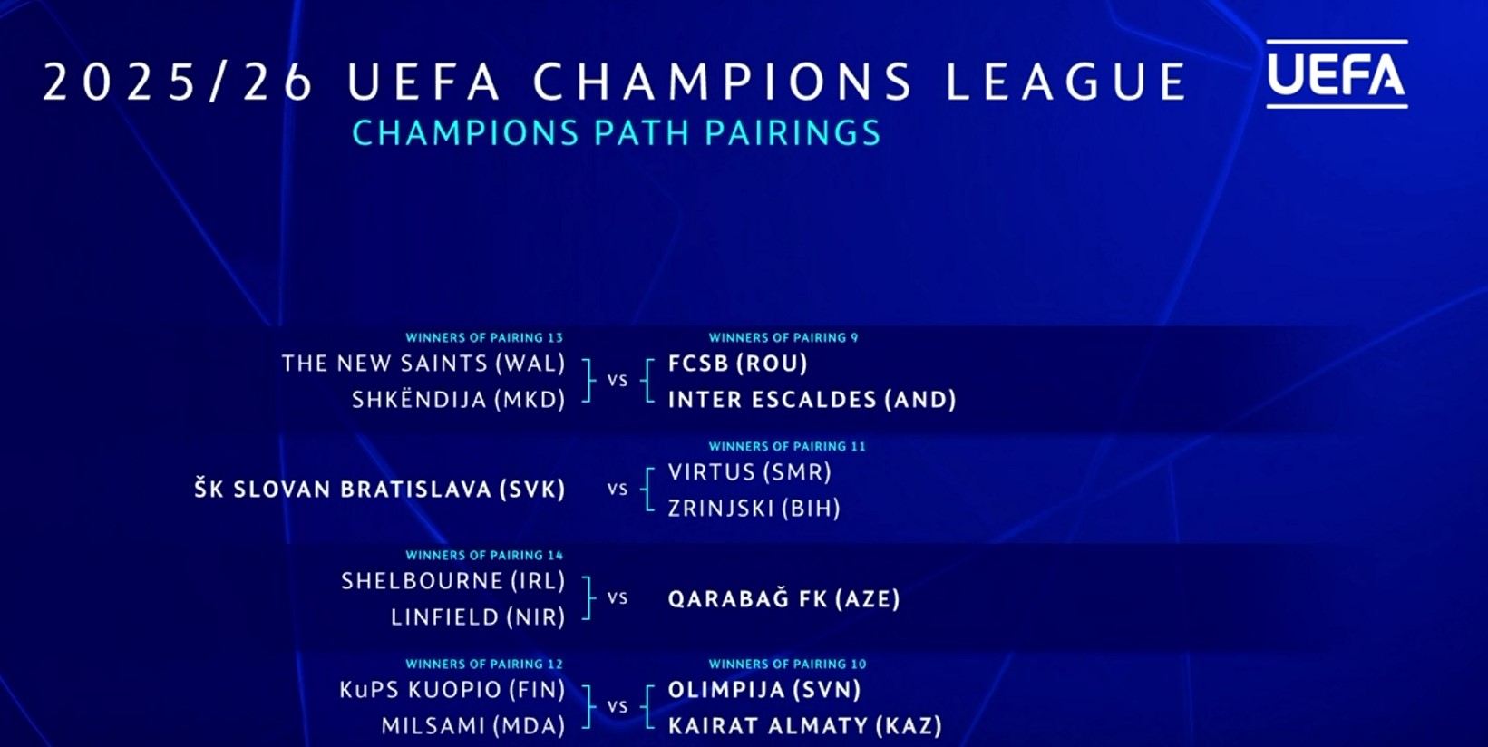 Результаты жеребьевки 2-го отборочного раунда Лиги чемпионов: