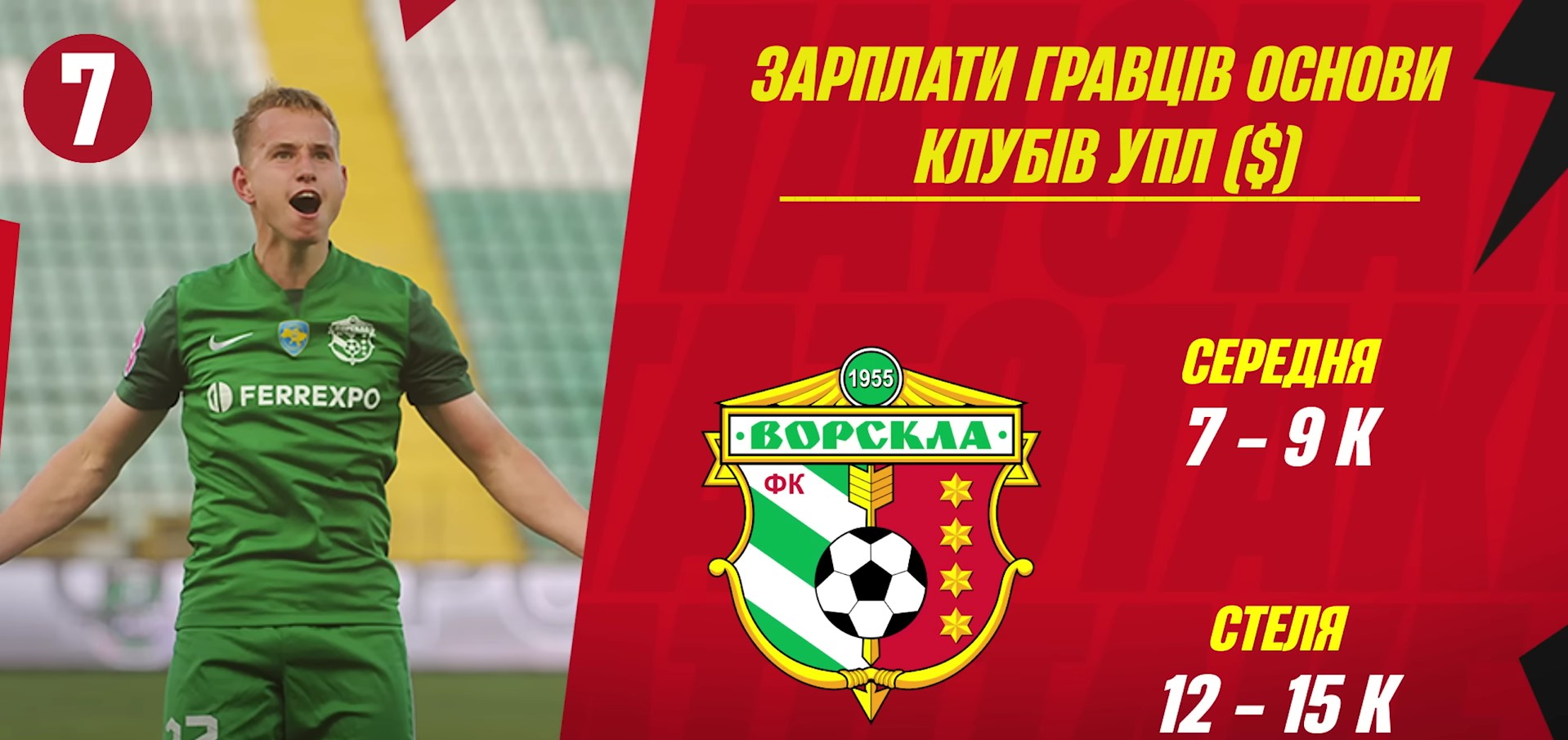 На 7-й позиции расположилась полтавская "Ворскла", которая вылетела в Первую лигу по итогам сезоне.