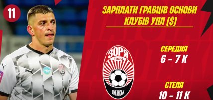 "Заря" в рейтинге зарплат оказалась на 11-м месте, однако в клубе не принято премировать футболистов за победы.