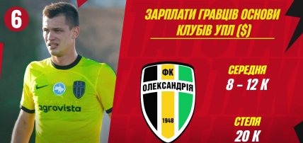 "Александрия", которая выиграла "серебро" УПЛ, платила игрокам от 8 до 20 тысяч долларов в месяц.