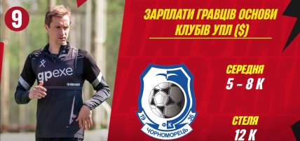 На 9-й позиции расположился "Черноморец" с премиями до 10 тыс. долларов (на команду) за победу. К слову, премиальные Моряки начали получать только со 2 круга, правда, это не помогло одесситам остаться в УПЛ. В играх за выживание премиальные для команды выросли до 1 млн грн.