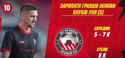 На 10-м месте расположился "Кривбасс", который хочет играть в еврокубках и претендовать на медали. За победу основных игроков команды награждали премиями до 1 тыс. долларов.
