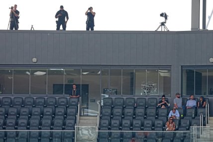 Трое работников секретной службы были замечены на крыше административного здания на арене. Они наблюдали за практически пустыми трибунами, ведь на стадион, который вмещает 26 тысяч человек пришло всего 8239 болельщиков.