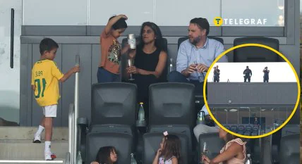 Трое работников секретной службы были замечены на крыше административного здания на арене. Они наблюдали за практически пустыми трибунами, ведь на стадион, который вмещает 26 тысяч человек пришло всего 8239 болельщиков.