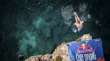 Канадская хайдаверша Молли Карлсон оступилась, прыгая с 22-метровой платформы на этапе Мировой серии Red Bull Cliff Diving в Полиньяно-а-Маре (Италия). Спортсменка благодаря своим рефлексам сумела сгруппироваться в полете, что спасло ей жизнь.