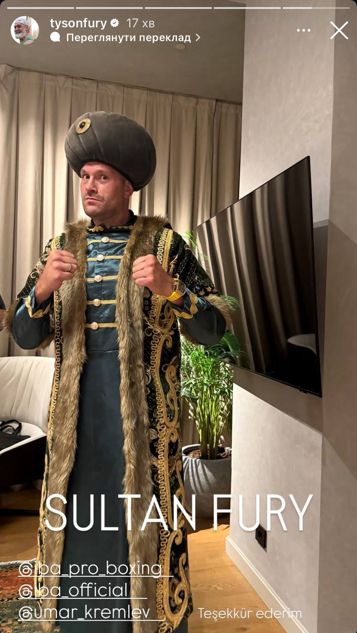Фьюри публикует посты и сторис, отмечая страницу IBA, страницу их профессионального промоушена, а также личную страницу Умара Кремлева. Более того, Тайсон лично прилетел в Стамбул, где 2 июля состоится вечер профессионального бокса от IBA.
