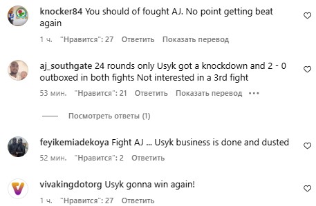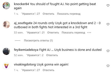 Отметим, в сети раскритиковали Фьюри за подобные видео. Пользователи считают, что британец зря раскручивает третий бой, ведь данный поединок не интересен широкой публике — Усик все всем доказал двумя победами. Кроме того, Тайсону рекомендуют встретиться в ринге с Энтони Джошуа. Портал LuckyPunch считает, что "Фьюри продолжает сходить с ума".