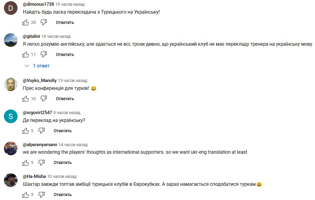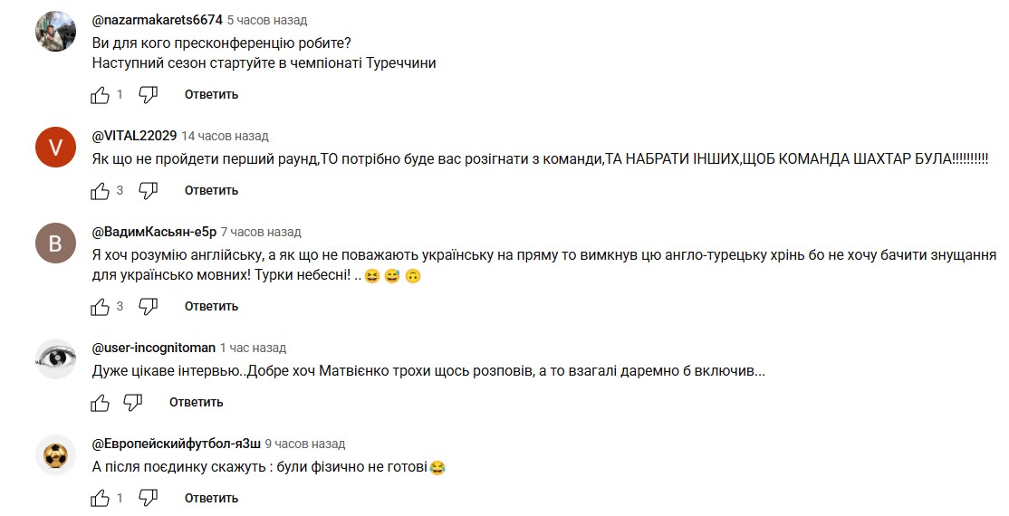 В комментариях под видео украинцы призвали "Шахтер" нанять переводчика, который переводил бы слова Турана на украинский язык. Один из пользователей заявил, что "Шахтеру" с таким подходом к родным болельщикам следует выступать в чемпионате Турции, а не Украины.