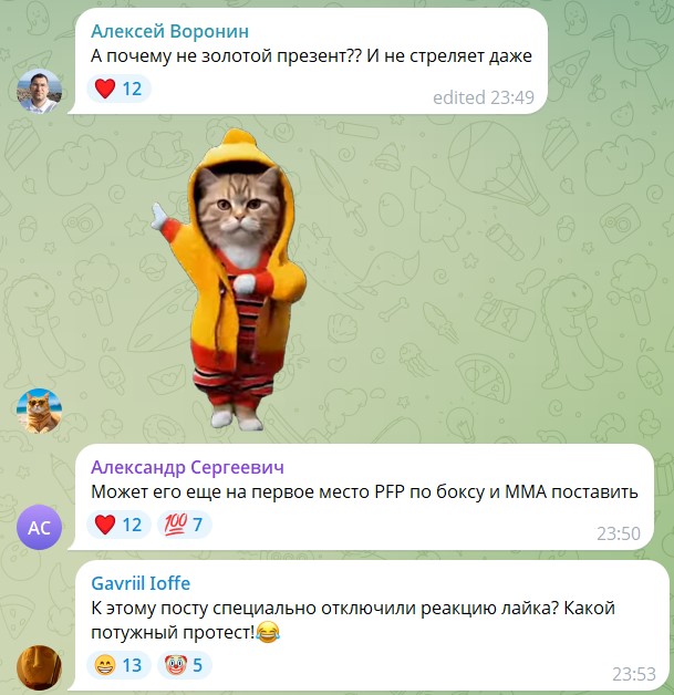 Во время турнира Кадыров получил специальные перчатки в трофейной рамке. Кроме того, лига, которая фактически находится под контролем главы Чечни, опубликовала ролик посвященный этому "цирковому представлению".