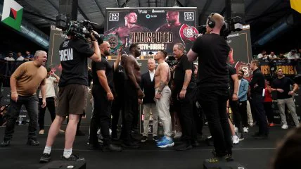 Накануне боксеры провели открытые тренировки, Усик появился на публике в футболке с важным посланием, после чего Кот и Динамит встретились лицом к лицу на совместной пресс-конференции. Кроме того, чемпионы провели официальную процедуру взвешивания, на которой британец значительно перевесил украинца.