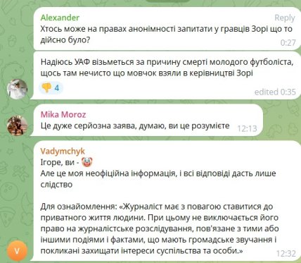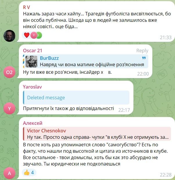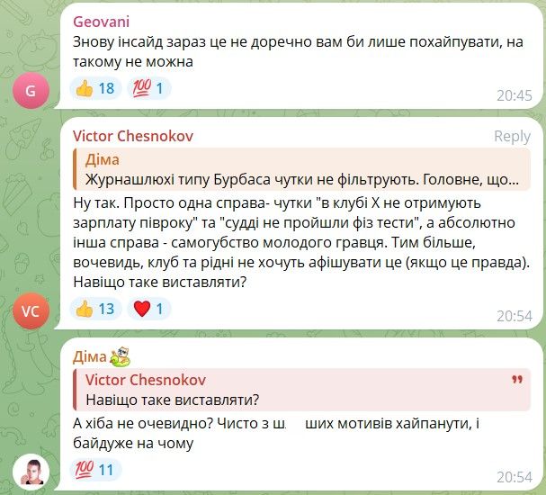 В комментариях под постом Бурбаса возник спор. В сети считают, что журналист не имел морального права публиковать подробности смерти игрока. Один из пользователей заявил, что у Игоря "совсем нет совести".