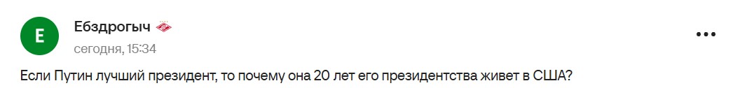 Соответствующий комментарий Пахалиной приводит sports.ru. В сети обратили внимание на то, что Юлия так любит Путина, что живет за океаном в "недружественной" для РФ стране.