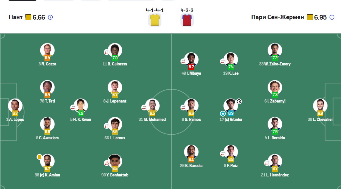 В стартовом составе парижан неожиданно оказался Забарный, который только неделю назад перешел в команду. У украинца было немного защитной работы, ведь практически весь матч парижане провели в атаке. Илья сыграл полный матч.