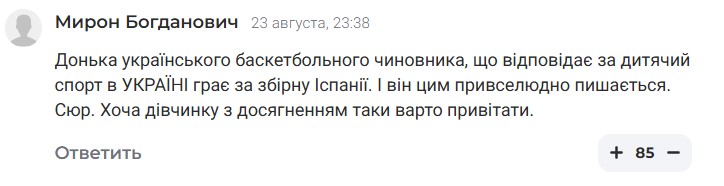 Некоторые пользователи поздравили Сергея и Анастасию с большим достижением, а вот другие восприняли в штыки успех дочери украинского баскетбольного функционера в Испании, ведь чиновник отвечает за детский спорт в Украине. Один из пользователей считает, что Лищук должен быть уволен.