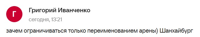 Об этом сообщает ТАСС. Россияне болезненно восприняли решение о переименовании арены, ведь понимают, что при Путине РФ стала марионеткой Китая.