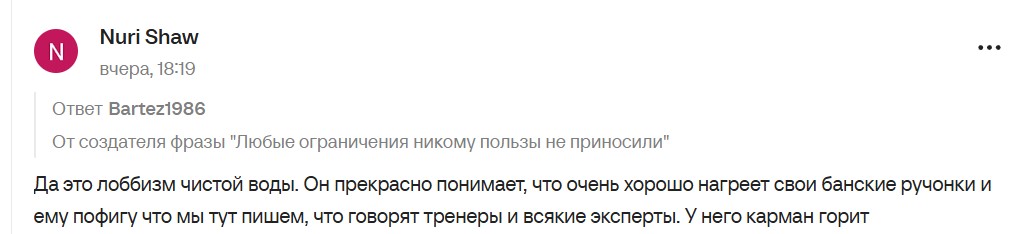 В сети лишь посмеялись над словами Дегтярева. Пользователи считают, что министр попросту хочет обогатиться за счет российского бюджета (большинство клубов в РФ находятся на государственном обеспечении, — Ред.).