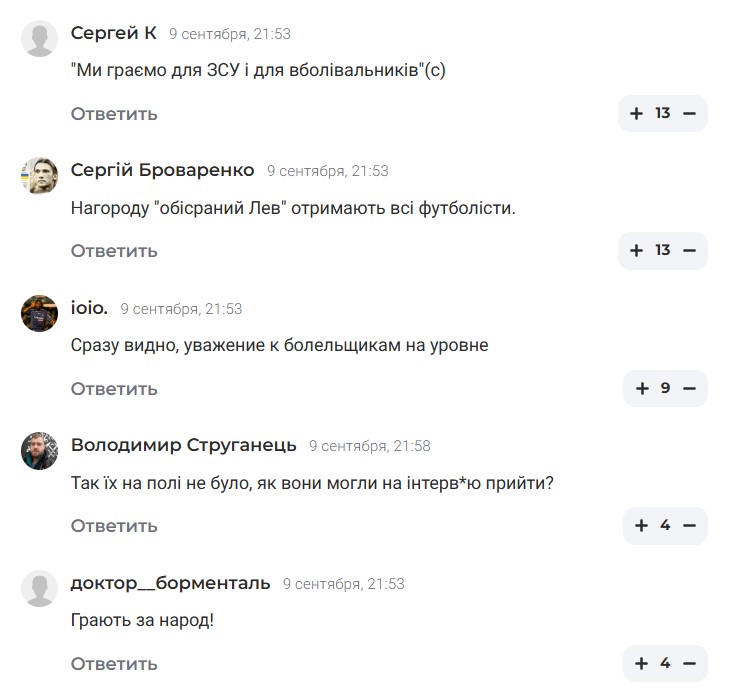 В сети раскритиковали игроков. Один из пользователей сравнил футболистов сборной Украины с "обо***нными львами", намекая на награду "Лев матча", которую получает лучший игрок национальной команды после каждого матча.