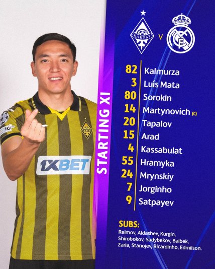 Во вторник, 30 сентября, в Лиге чемпионов УЕФА сезона 2025/26 проходил занимательный матч "Кайрат" — "Реал". В первом туре казахстанский клуб проиграл "Спортингу", а Сливочные обыграли "Марсель".