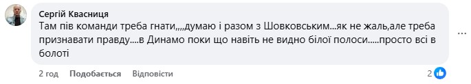 Главный тренер "Динамо" Александр Шовковский долго принимал решение о замене защитника Тараса Михавко, из-за чего киевляне пропустили гол, играя в меньшинстве. После поединка болельщики массово раскритиковали Шовковского из-за оттягивания замены, передает "Телеграф". Кроме того, фанатов Бело-синих не устраивают еврокубковые результаты команды.