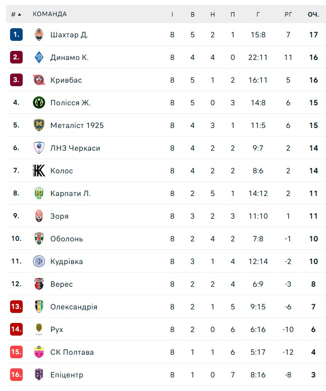- 8-й тур УПЛ продлился с 3 по 5 октября