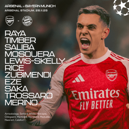В среду, 26 ноября, лондонский "Арсенал" принимал мюнхенскую "Баварию" в центральной игре 5-го тура общего этапа Лиги чемпионов УЕФА сезона 2025/26. Победитель этой игры единолично возглавил турнирную таблицу ЛЧ.