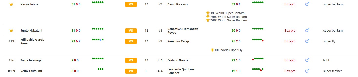 В субботу, 27 декабря, в Эр-Рияде (Саудовская Аравия) состоится большое шоу профессионального бокса "The Ring V: Ночь самураев". В главном бою вечера пройдет титульный поединок Наоя Иноуэ (31-0, 27 КО) — Давид Пикассо (32-0-1, 17 КО).