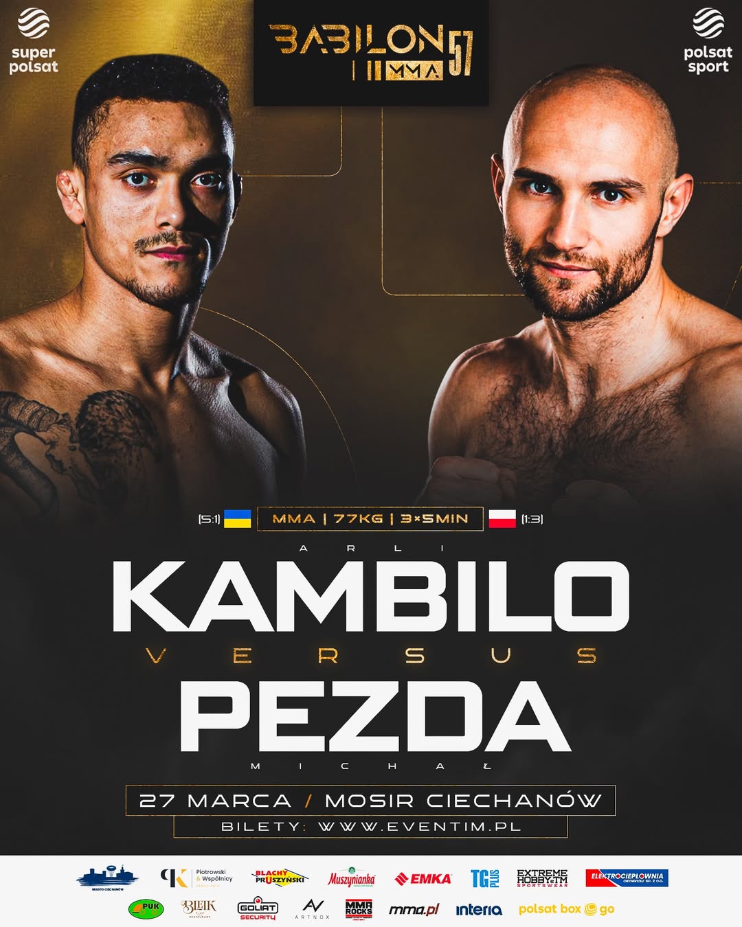 Дело в том, что официальный постер к бою гласит, что на вечере ММА Babilon MMA 57 в Польше Камбило сразится с Михалом Пездой. В сети данный постер встретили волной шуток, передает "Телеграф".