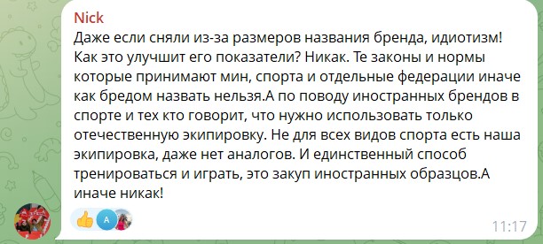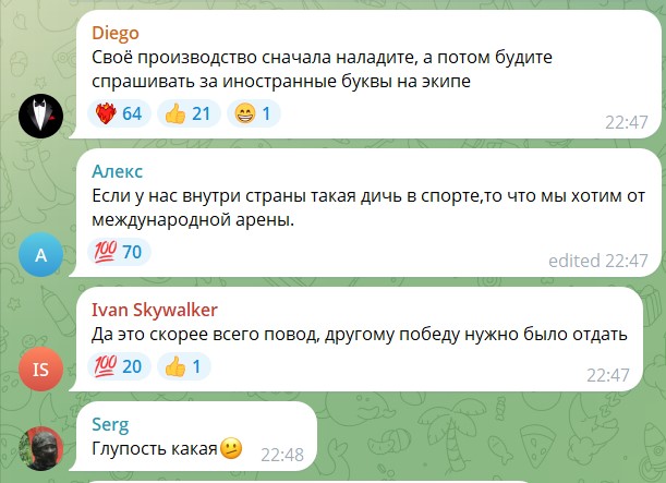 Сказали: "Arena — это бренд, который из страны ушел, не положено". Дисквалифицировали за надпись на английском языке.