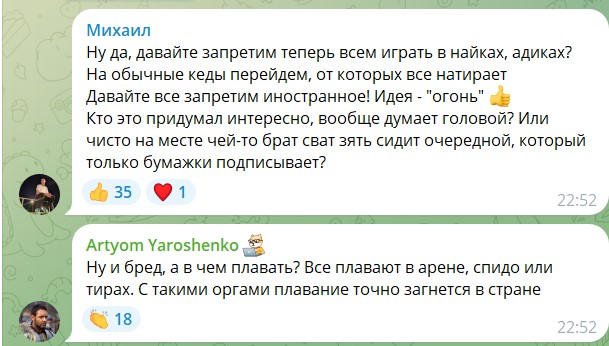 На соревнованиях по плаванию в Краснодаре (РФ) дисквалифицировали ребенка из-за английской надписи с названием бренда на плавках. Организаторы изначально объяснили это новым законом в России, однако затем дали заднюю.