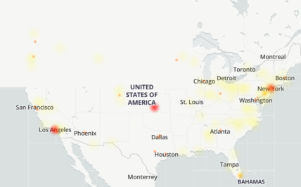 На карте сервиса также видно, что проблемы в работе социальной сети не только у европейцев, но и в странах Америки тоже.