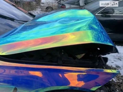 Этот BMW 3 Series обтянут голографической пленкой. Ранее он разъезжал по улицам Полтавы, пока не попал в ДТП. Как видим на фото, автомобиль получил значительные повреждения. Похоже, двигатель находится в неисправном состоянии. Также скомканный капот, треснувшее лобовое стекло, есть повреждения на боковых частях авто. Пробег автомобиля, как отмечает владелец, составляет 155 тысяч километров.