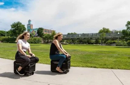 Электрочемоданы, которые недавно приобрели незаурядную популярность в Японии, несмотря на свою высокую стоимость (около 1000 долларов США), по факту являются гибридом обычного багажа и электроскутера. Эти устройства можно, как обычно, катить за собой, так и использовать как транспортное средство, активировав особый режим с выдвижным рулем и подножками.