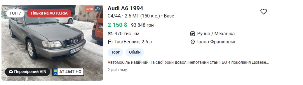 Главное преимущество данного авто, по словам авторов, — это удовольствие от вождения. Среди минусов — коррозия кузова и дорогое содержание. Цены — 70-90 тысяч гривен.