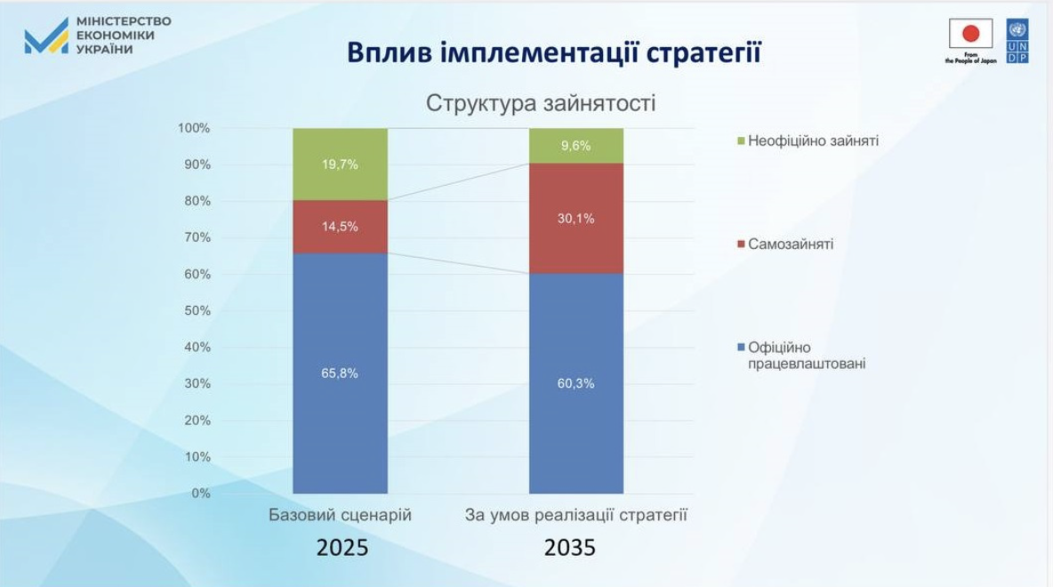 Так, програма Державної служби зайнятості для жінок на "чоловічі" професії, яка складається з 31 спеціальності, вже забезпечує 100% працевлаштування для 100 жінок на місяць. Все це призведе до значного зниження гендерного розриву в оплаті праці та підвищення рівня економічної активності жінок, що, у свою чергу, сприятиме зростанню ВВП та потенційно – підвищенню народжуваності за рахунок кращої підтримки сімей.
